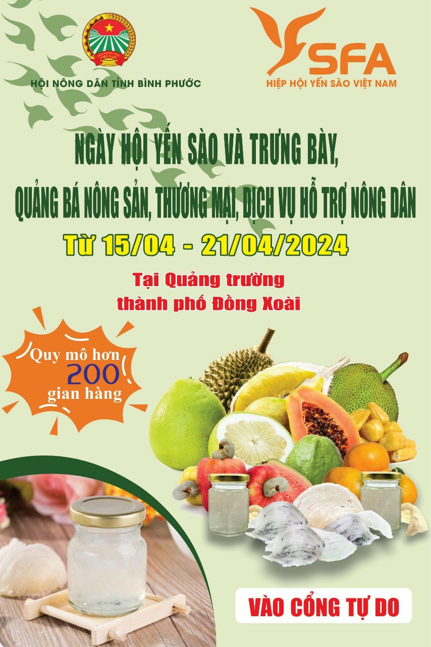 Vào tháng 4/2024, tỉnh Bình Phước sẽ trở thành trung tâm từ phía ngành công nghiệp yến sào tại Việt Nam, khi sắp diễn ra sự kiện “Ngày Hội Yến Sào và Trưng Bày Nông Sản.” Đây không chỉ là một sự kiện độc đáo mà còn là cơ hội để tôn vinh và quảng bá cho ngành yến sào trong và ngoài địa phương.