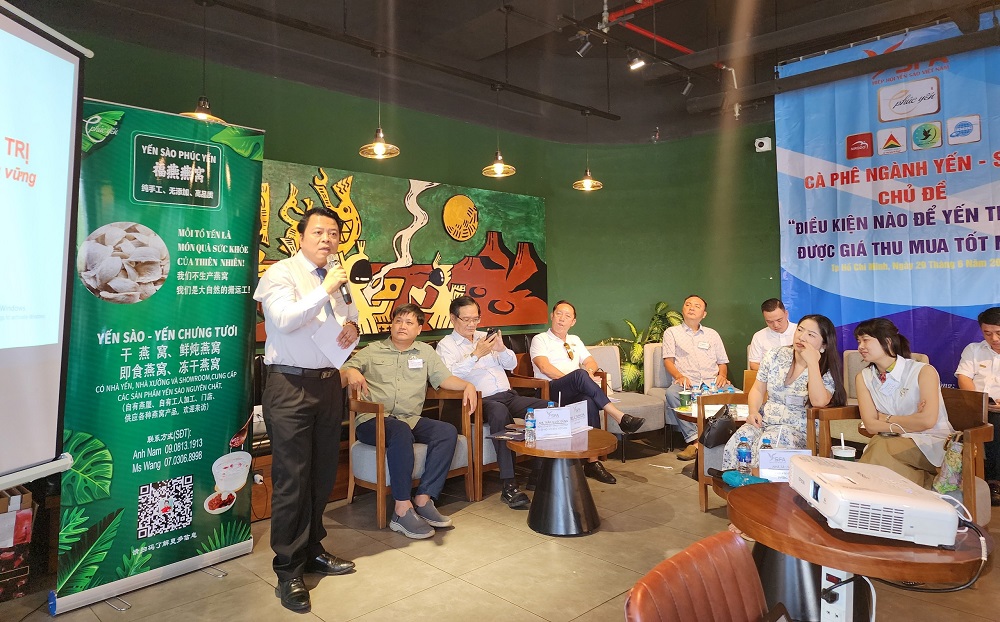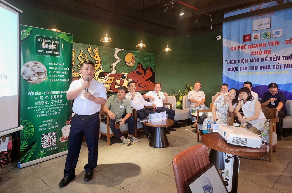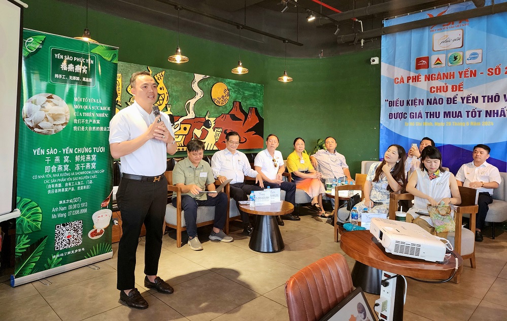 Cuối cùng, ông Phạm Duy Khiêm – Phó Chủ tịch Hiệp hội Yến sào Việt Nam – đã chia sẻ về kinh nghiệm và sự liên kết giữa người nông dân (người nuôi yến) với thương lái hoặc với công ty thu mua, tạo nên một mô hình liên kết chặt chẽ và hiệu quả.