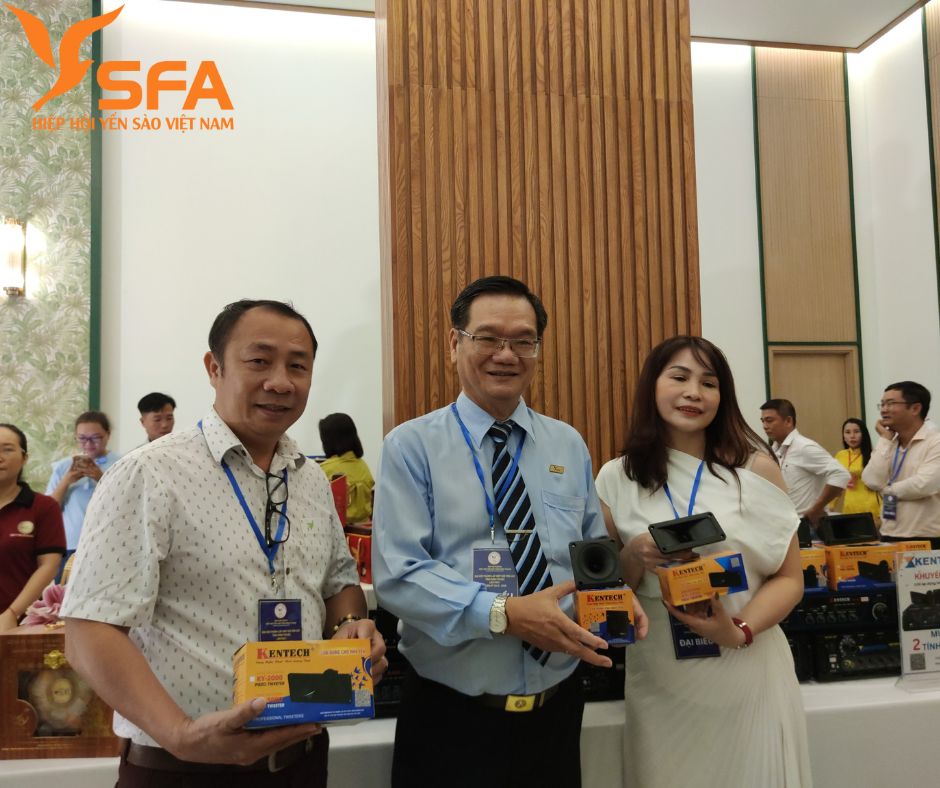 Để ghi nhớ quan tâm của lãnh đạo địa phương, Hiệp hội Yến sào Việt Nam đã trao tặng Huy hiệu của Hiệp hội cho đồng chí Chủ tịch UBND tỉnh và đồng trưởng Ban Tuyên giáo ủy.
