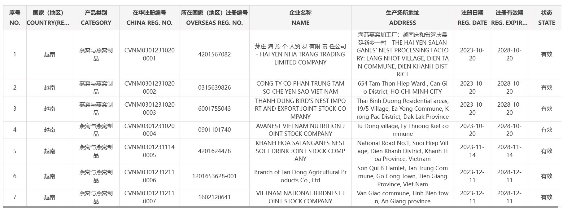 Sau 2 tháng kể từ ngày hoàn tất buổi đánh giá tiêu chuẩn xuất khẩu từ Cục Hải quan Trung Quốc, với sự chỉ đạo quyết liệt của Lãnh đạo Bộ Nông nghiệp và Phát triển nông thôn, sự nỗ lực của Cục Thú y và các đơn vị liên quan, cũng như sự quyết tâm của Doanh nghiệp, thì Công ty Cổ phần Việt Nam Quốc Yến chính thức là doanh nghiệp tiếp theo được Tổng cục hải quan Trung Quốc cấp mã số cho phép xuất khẩu nhóm sản phẩm Tổ yến tinh chế. Như vậy,Công ty Việt Nam Quốc Yến trở thành Doanh nghiệp đại diện khu vực miền Nam Việt Nam đầu tiên của khu vực Đồng Bằng Sông Cửu Long chính thức xuất khẩu chính ngạch Yến sào sang Trung Quốc.