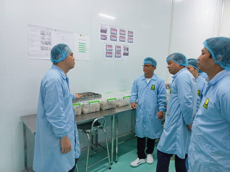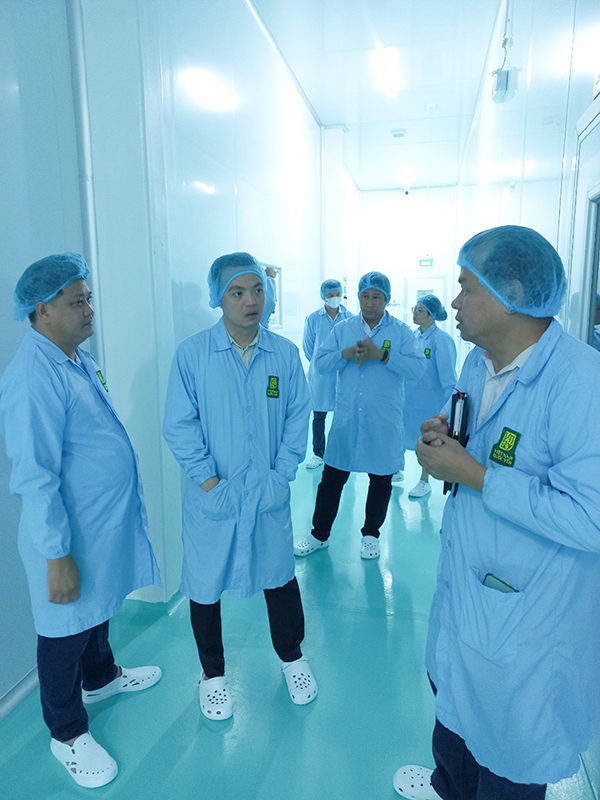 Tại Công ty Cổ phần Việt Nam Quốc Yến (tổ 8, ấp Đây Cà Hom, xã Văn Giáo, thị xã Tịnh Biên, tỉnh An Giang), đoàn công tác đã tham quan các khu vực sản xuất của nhà máy với quy trình sản xuất hiện đại, đạt các tiêu chuẩn chất lượng như ISO 22000:2018, HACCP, FDA. Hệ thống xử lý nước thải của nhà máy thiết kế theo Công nghệ Wetland xử lý nước hoàn toàn bằng phương pháp sinh học và cơ học không sử dụng hóa chất, đảm bảo nguồn nước sau khi xử lý an toàn với môi trường. Trong buổi làm việc cùng đoàn, ThS. Hồng Đình Khoa – Chủ tịch Hội đồng Quản trị, Giám đốc điều hành Công ty Cổ phần Việt Nam Quốc Yến đã giới thiệu các giá trị cốt lõi, định hướng phát triển những sản phẩm yến sào đạt tiêu chuẩn xuất khẩu của công ty và đề xuất những nội dung mong muốn hợp tác nghiên cứu chuyên sâu.