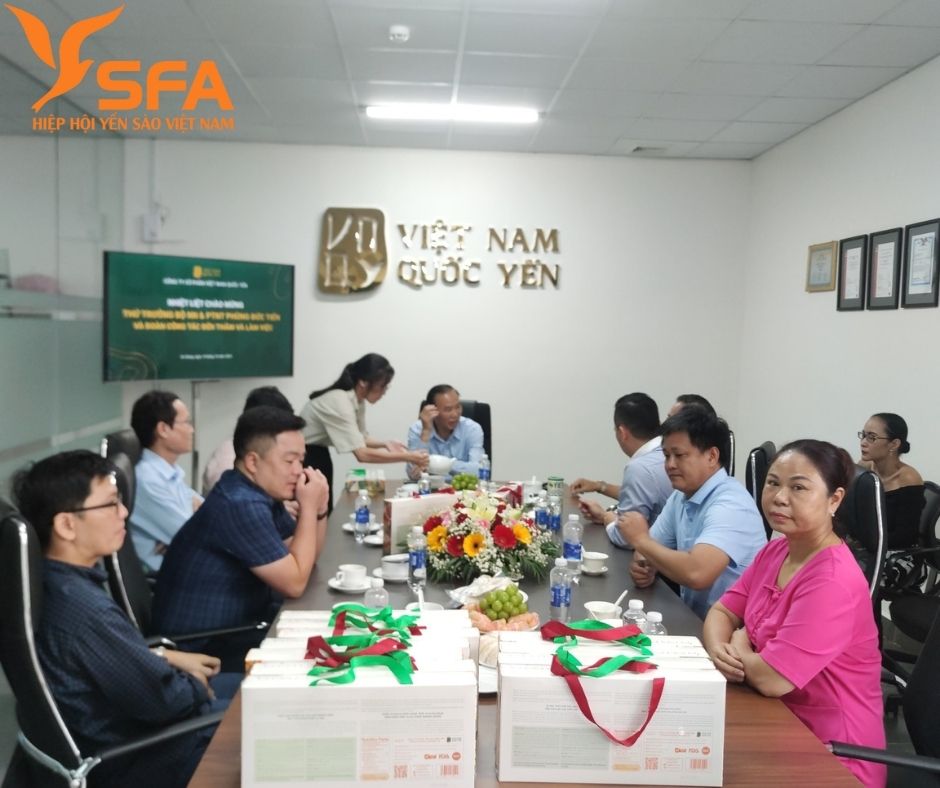 Tại buổi làm việc, ông Hồng Đình Khoa - Tổng Giám Đốc Công ty CP Việt Nam Quốc Yến đã báo cáo hoạt động kinh doanh sản xuất, Thứ trưởng đánh giá cao nỗ lực hoàn thiện dự án xuất khẩu yến sảo của công ty.Ông cho biết, việc ký Nghị định thư xuất khẩu chính ngạch sản phẩm tổ yến sang Trung Quốc là bước tiến quan trọng giúp cho ngành yến Việt Nam đẩy mạnh phát triển thị trường và bảo đảm đầu ra ổn định trong thời gian tới.Việc đầu tư nhà máy sản xuất yến sào tiêu chuẩn cao thể hiện tầm nhìn dài hạn, hướng tới mục tiêu xuất khẩu bền vững. Ông nhấn mạnh, sản phẩm tổ yến Việt Nam cần được định vị đúng đắn và đẩy mạnh phát triển thương hiệu trên phạm vi quốc tế nhằm phát huy những sản phẩm giá trị của người Việt.